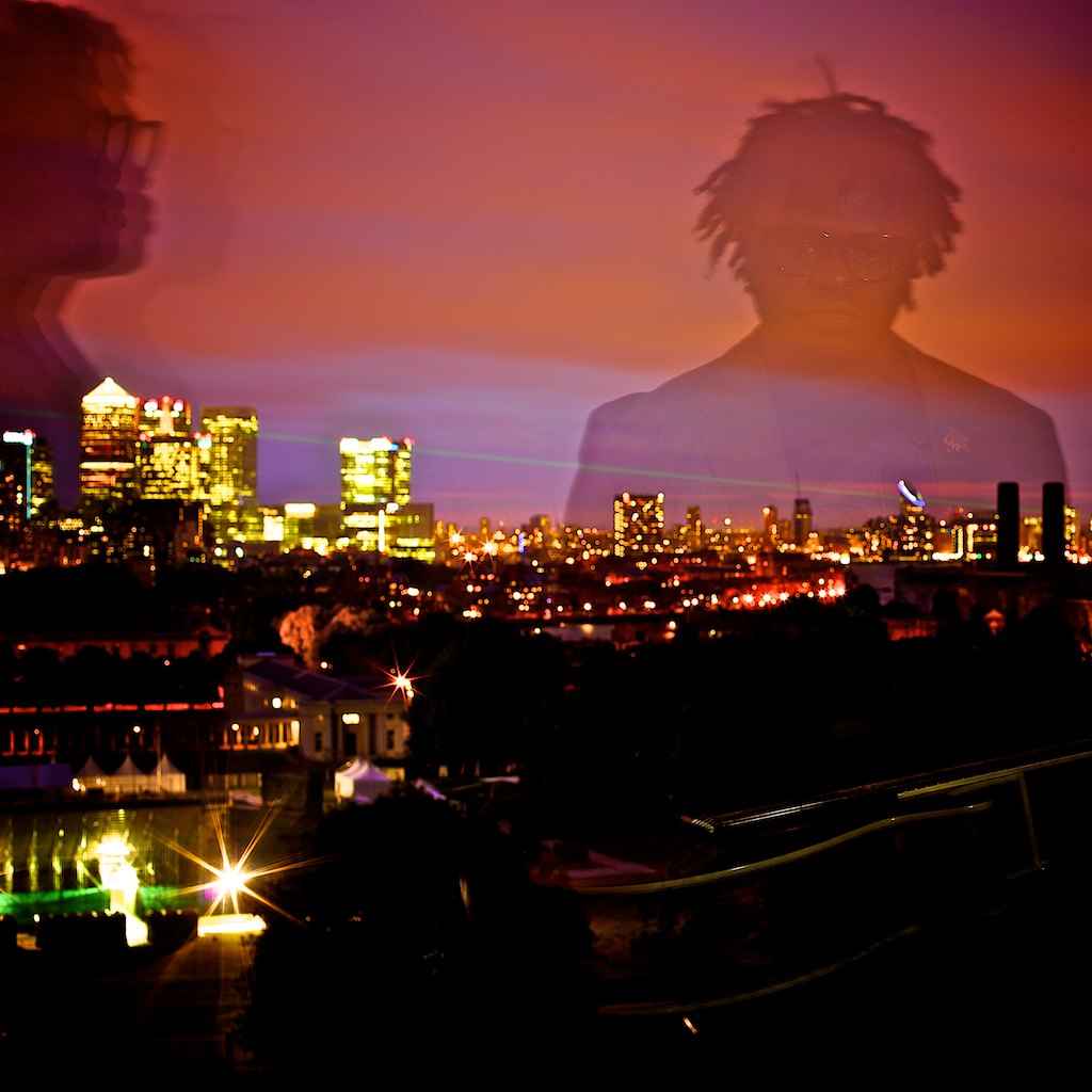 For the photos we met up in Greenwich. Not only is it fairly close to where Midé lives, but it was an obvious location for a song with time as a central theme. I suggested we meet up by the Royal Observatory (to hammer the location choice home!), and suggested we meet not too long before dusk to capture a clear sense of change in time and the natural environment. The Royal Observatory has the added benefit of being on a hill with great views across London. I wanted to use London as a backdrop as it is, by it’s very nature, a symbol of change and, with it’s long history and varied architecture (and new, old, and temporary structures), a catalogue of time passed and the human experience. Whilst there are other photos from the shoot I prefer in their own right, I felt that this shot was the most interesting for the project and appropriate for the song: by using a long exposure I was able to highlight the shifting “now” by capturing Midé in more than one pose and position (and in a transient state). The Observatory’s green timeline laser was the ice on the time-themed cake!